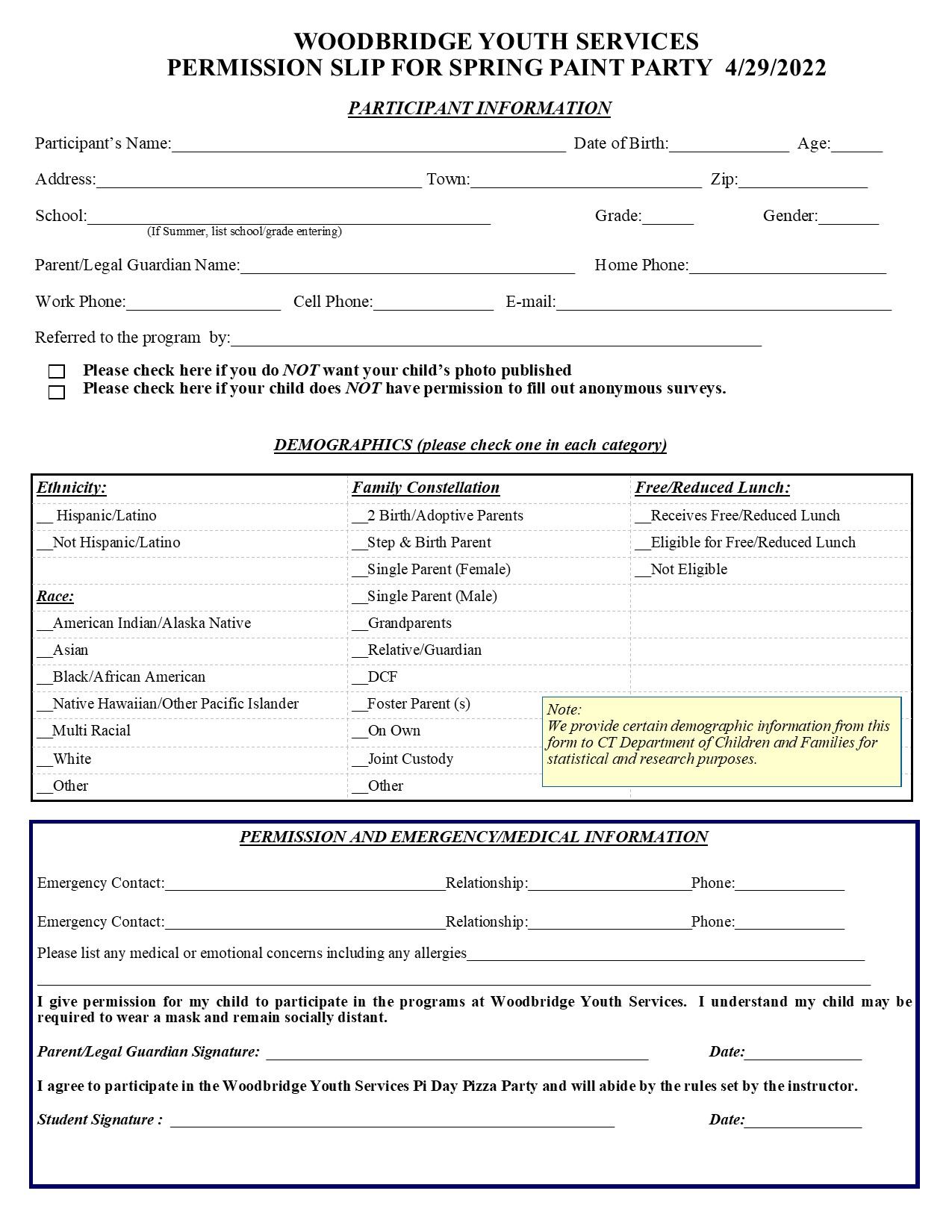 Join the paint party at the Amity Middle School-Bethany cafeteria from 2:30 to 4:00 on April 29 with instructor Samantha Woodruff who is patient and knowledgeable. Students will paint a spring scene and enjoy a snack while they create. Cost is $20. Please send payment in advance along with permission form to Woodbridge Youth Services.